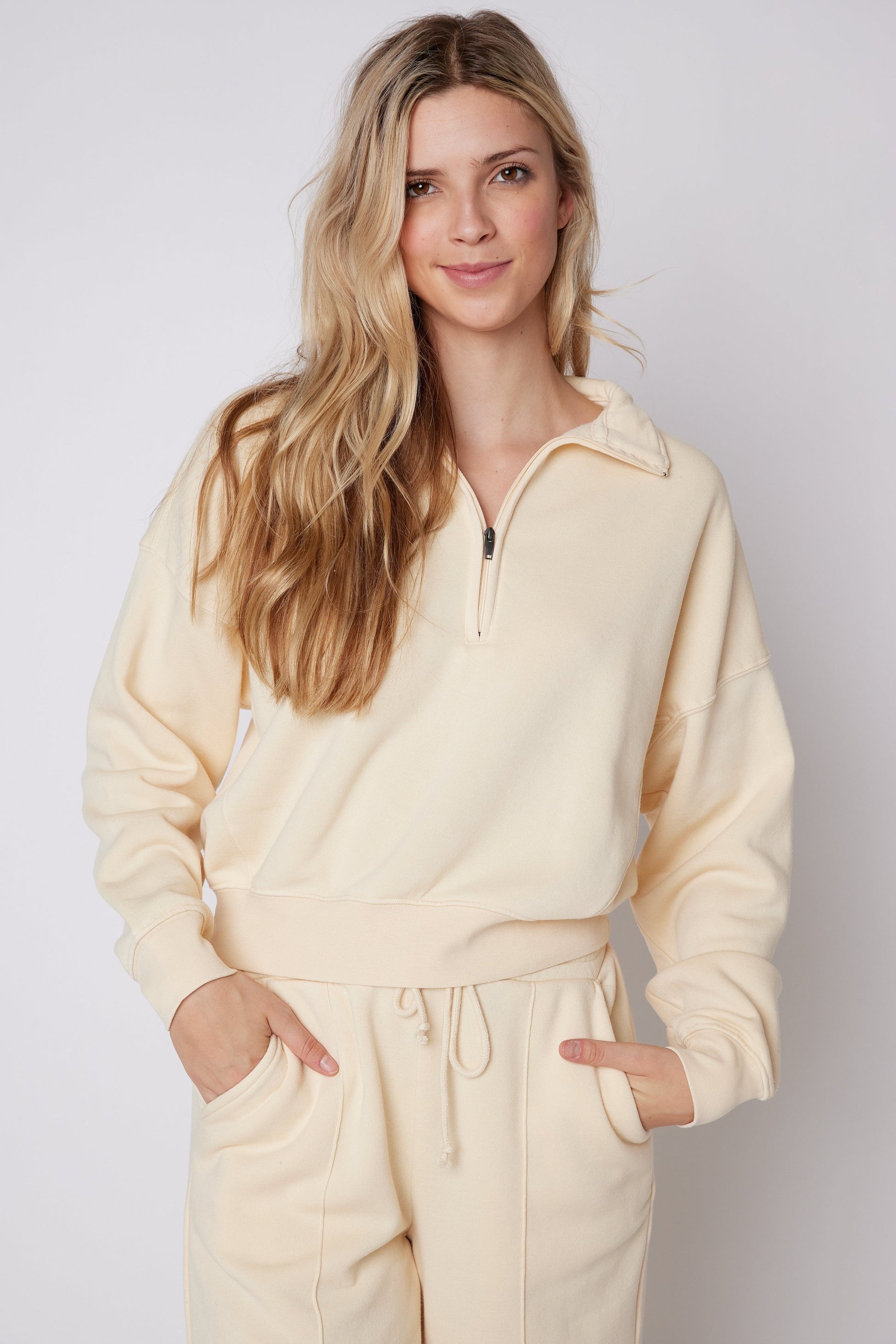 Get ready to lounge in style with the Taylor Half Zip Sweatshirt. This sweatshirt is perfect for those days when you just want to kick back and relax. With a half zip design, it's easy to throw on and adds a touch of fashion to any lounge outfit.