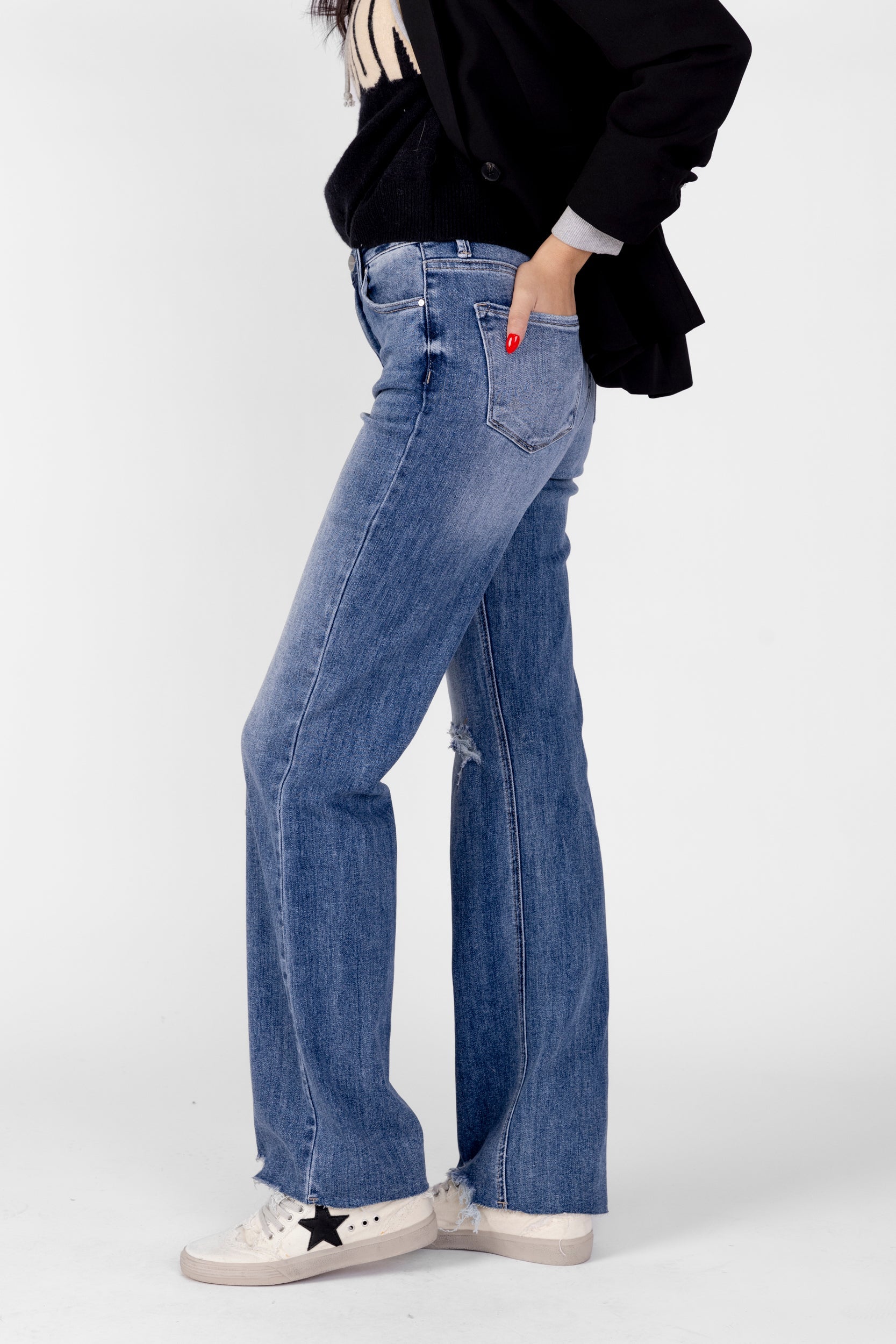 SALE - Thea High Rise Long Inseam Straight Leg Jean