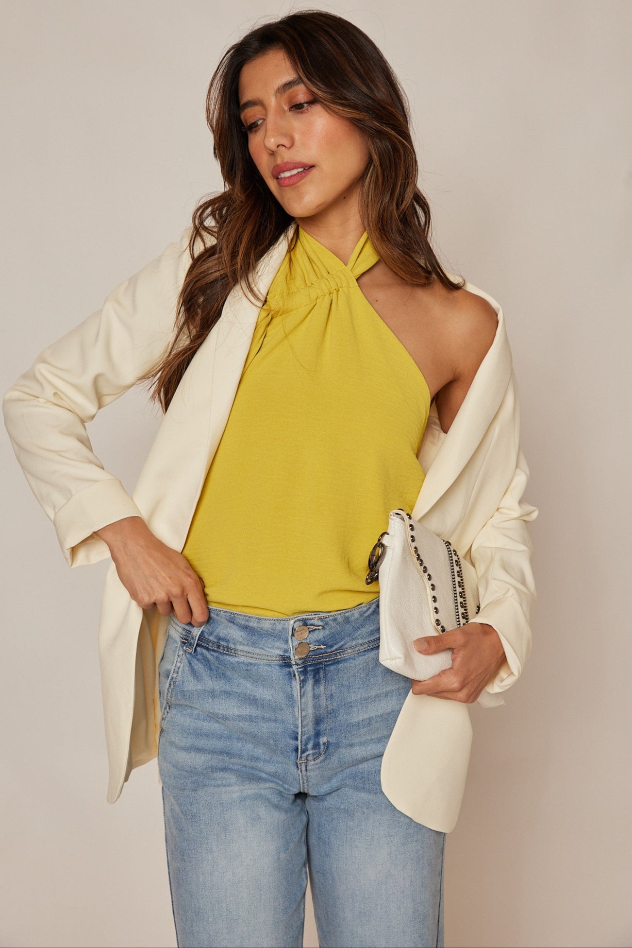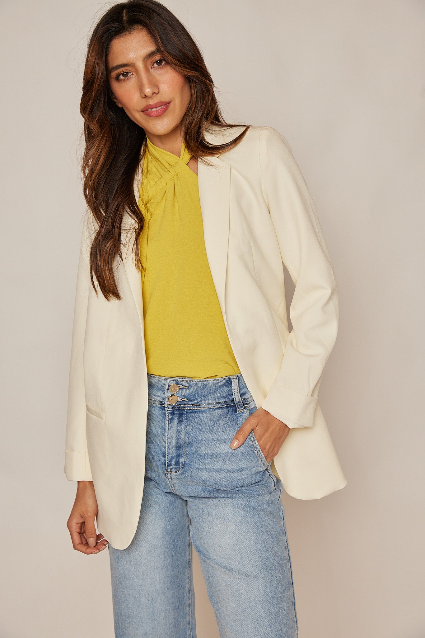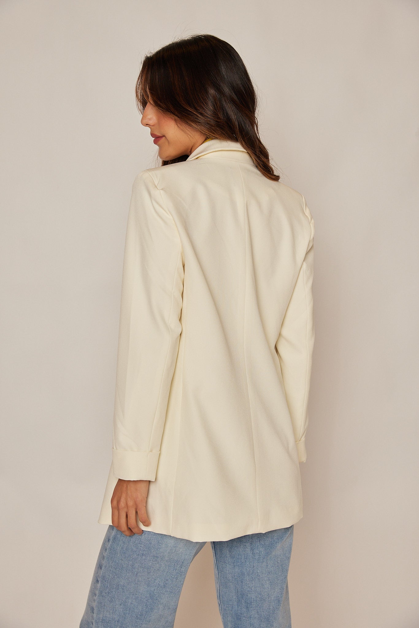 Go bold and stand out in the Vivian Oversized Blazer. With its crisp white color and oversized fit, this blazer is the perfect addition to any wardrobe. Rock it with confidence and turn heads wherever you go.