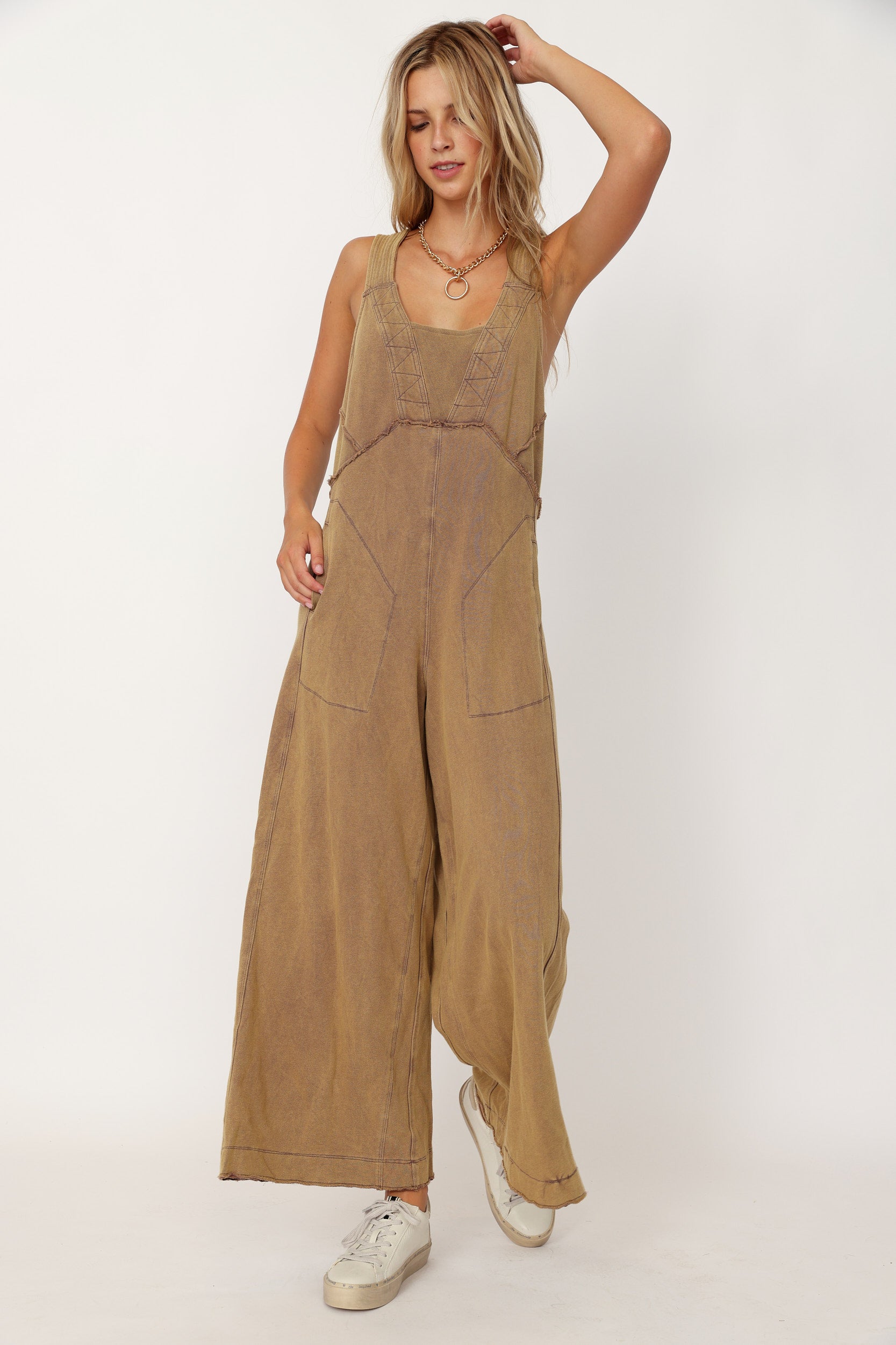 SALE - Wiley Mineral Wash Wide Leg Jumpsuit